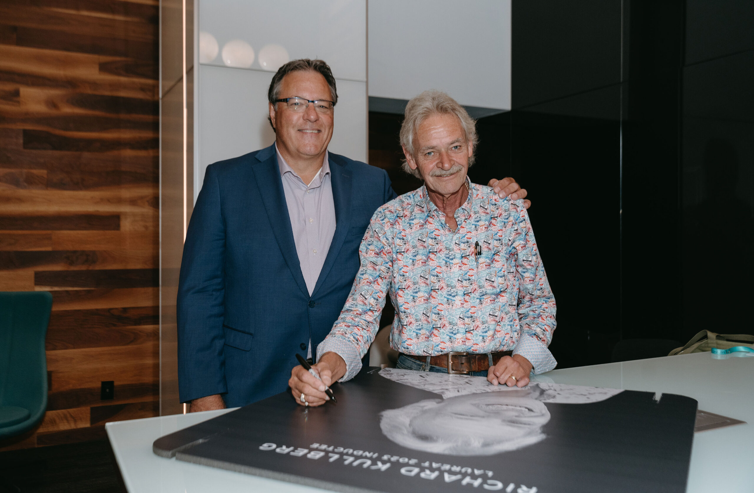Richard Kullberg est intronisé au Temple de la renommée par le président du conseil d’administration Richard Wall. Crédit photo : Xsight Photography & Cinemas